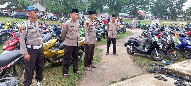 “Polsek Pangean, Sholat Idul Fitri dilaksanakan di masjid Durratunasihin di Desa Sako dengan pesan-pesan keagamaan dari khatib. Pengamanan dilakukan untuk menjaga keamanan dan kenyamanan selama acara,”