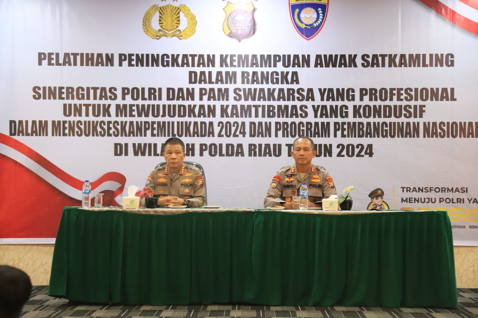 “Pelatihan ini diharapkan dapat memberikan gambaran dalam pelaksanaan Satkamling di jajaran Polda Riau, koordinasi dan kolaborasi antara Polri dan masyarakat dalam memelihara keamanan dan ketertiban di wilayah lingkungannya,” tambahnya.