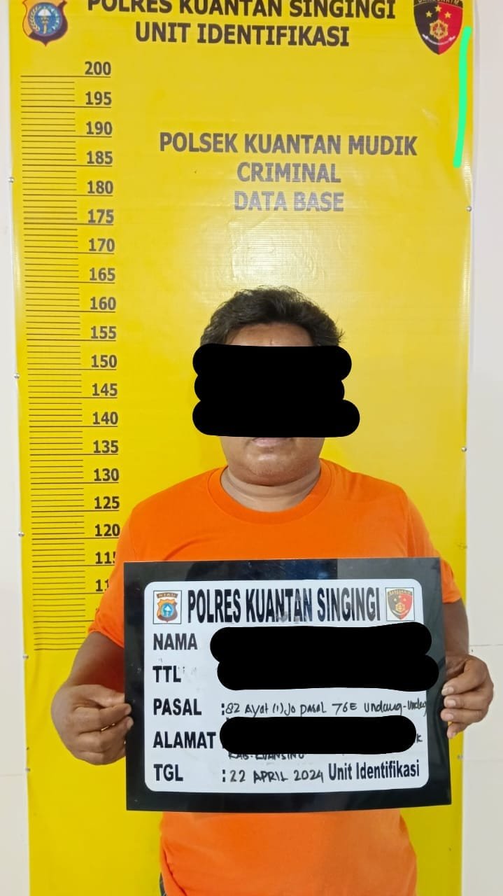 Kapolres Kuansing, AKBP Pangucap Priyo Soegito, S.I.K, M.H., melalui Plh. Kapolsek Kuantan Mudik, AKP Muslim Caniago mengatakan, “Pelaku yang diduga melakukan tindak pidana tersebut adalah S (45). Peristiwa tersebut terjadi ketika korban sedang menunggu neneknya yang sedang dirawat di Puskesmas,”