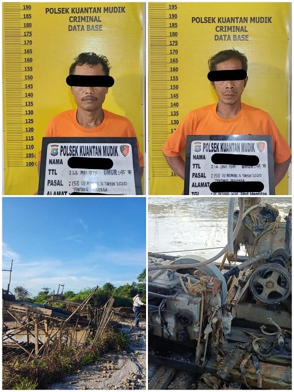Saat tiba di Tempat Kejadian Perkara (TKP), petugas mendapati dua orang pelaku yang tengah melakukan aktivitas penambangan ilegal. Kedua pelaku yang diamankan adalah HP (45) dan HS (44), keduanya merupakan warga lokal yang diduga kuat terlibat dalam kegiatan penambangan emas tanpa izin. Setelah berhasil menangkap para pelaku, petugas segera membawa mereka beserta barang bukti ke Polsek Kuantan Mudik untuk dilakukan penyelidikan lebih lanjut.
