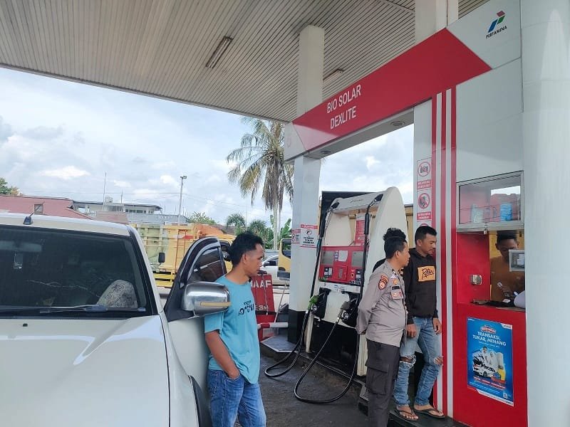 Polsek Kuantan Tengah Lakukan Patroli Pengecekan di SPBU Sei Jering Teluk Kuantan