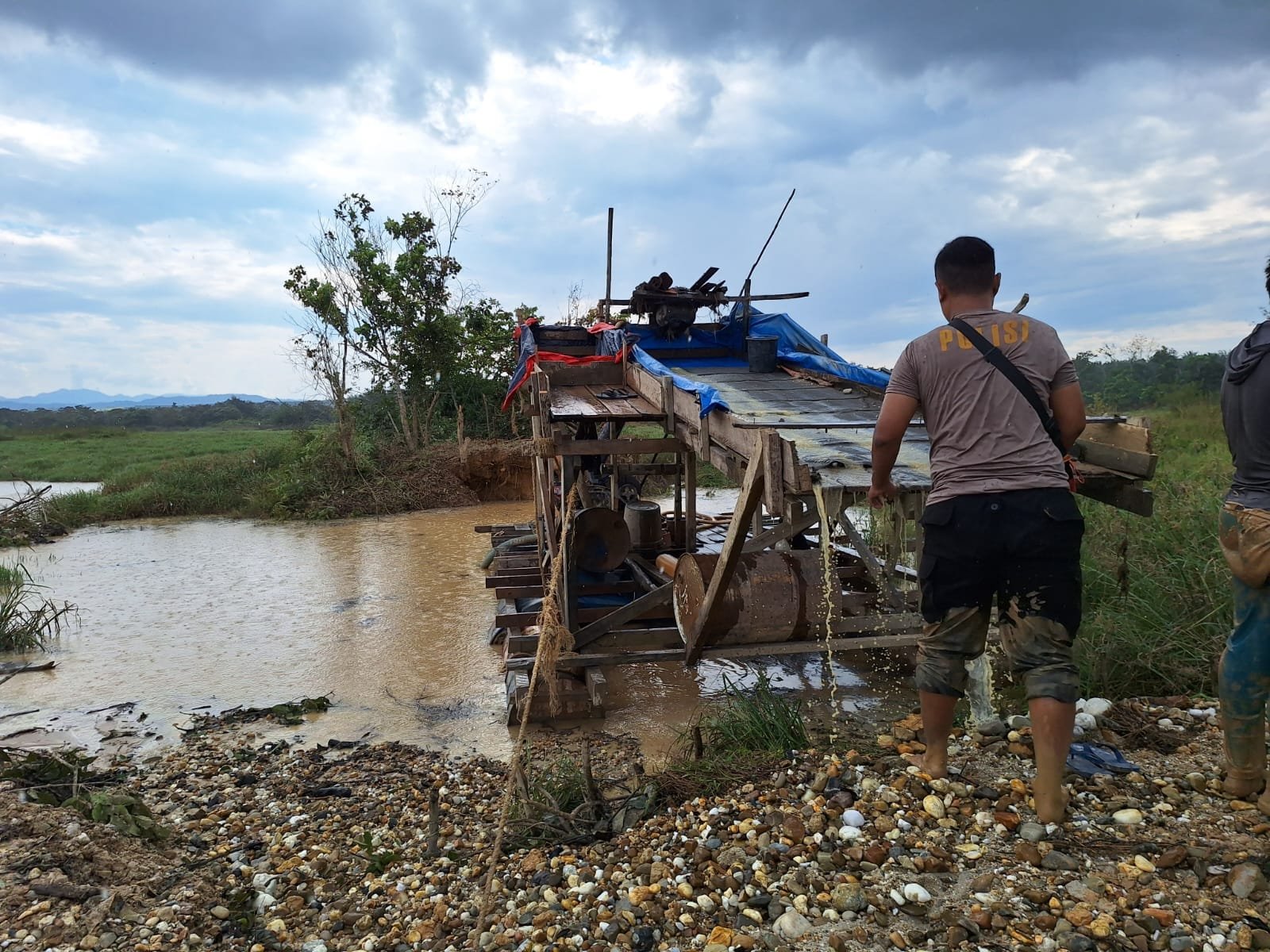 “Barang bukti yang diamankan meliputi 1 unit mesin diesel merk Sanca, 1 unit mesin Robin, 1 batang pipa paralon warna putih, 1 buah spiral warna biru, 1 gulung gabang warna cokelat, 1 buah dulang plastik warna hitam, 1 buah ember warna hitam, dan 2 lembar karpet,”