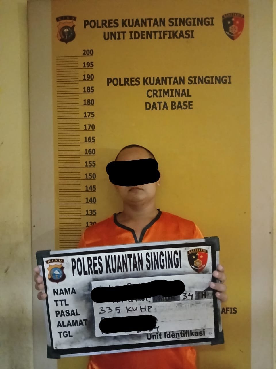 Penangkapan tersangka setelah melakukan penyelidikan, pada Senin, 13 Mei 2024, JP (35) datang ke Mapolres Kuansing untuk dimintai keterangan sebagai tersangka. Setelah dilakukan pemeriksaan, penyidik Sat Reskrim Polres Kuansing berkoordinasi dengan Kasat Reskrim AKP Linter Sihaloho, S.H., M.H., yang memerintahkan untuk segera dilakukan penangkapan. JP (35) kemudian ditangkap dan diamankan di Polres Kuantan Singingi.