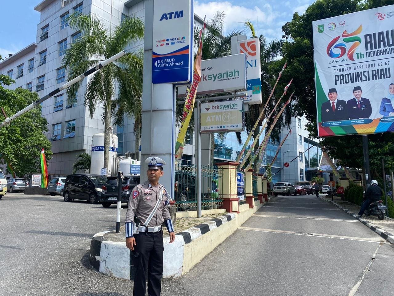 “Dan tidak menutup kemungkinan beberapa rute menuju ke RSUD Arifin Ahmad agak padat oleh pengguna jalan baik, simpatisan atau pendukung paslon,” tambahnya.