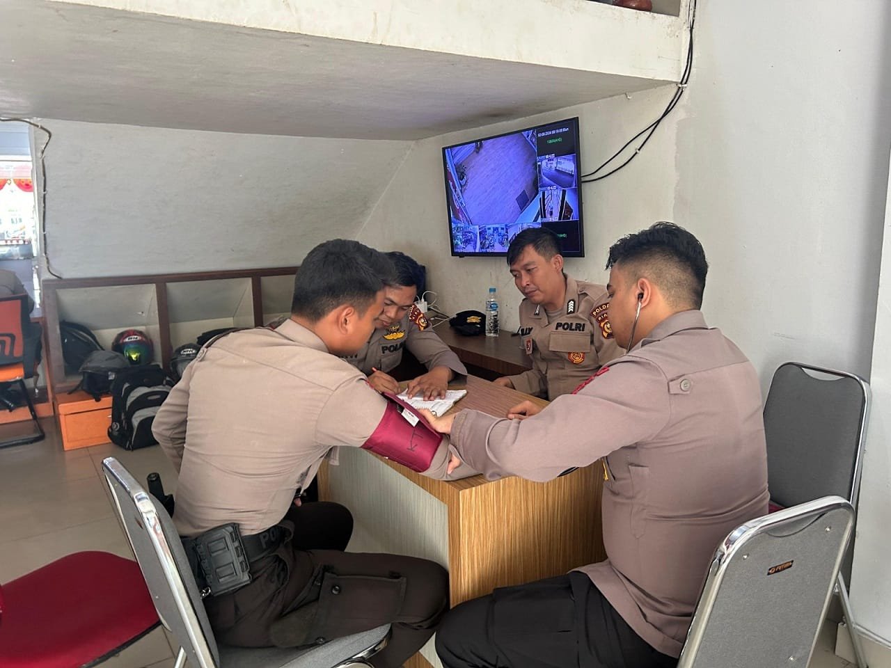 “Dalam patroli kesehatan kita memberikan pelayanan kesehatan meliputi pengecekan tensi darah serta memberikan vitamin kepada personel yang terlibat dalam pengamanan tahapan Pilkada,” jelasnya.
