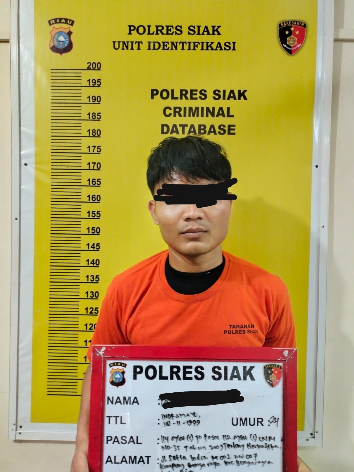 “Kemudian Tim Opsnal Satnarkoba Polres Siak yang dipimpin Aipda Jhon Hendro Napitupulu langsung membawa satu orang diduga pelaku dan Barang Bukti ke Mapolres Siak guna Pemeriksaan lebih lanjut,” terang AKP Riza.