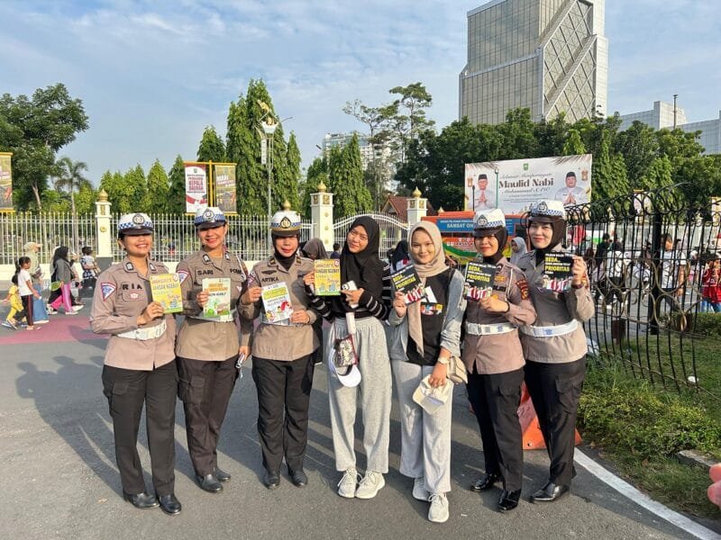Sementara itu, tampak personel Ditlantas Polda Riau yang dipimpin AKP Lili Sulfani, S.I.K yang saat ini menjabat selaku Paur Sie Fasmat Subdit Regident Ditlantas Polda Riau membagikan brosur himbaun Kamtibmas dan Kamseltibcarlantas kepada Pengunjung.