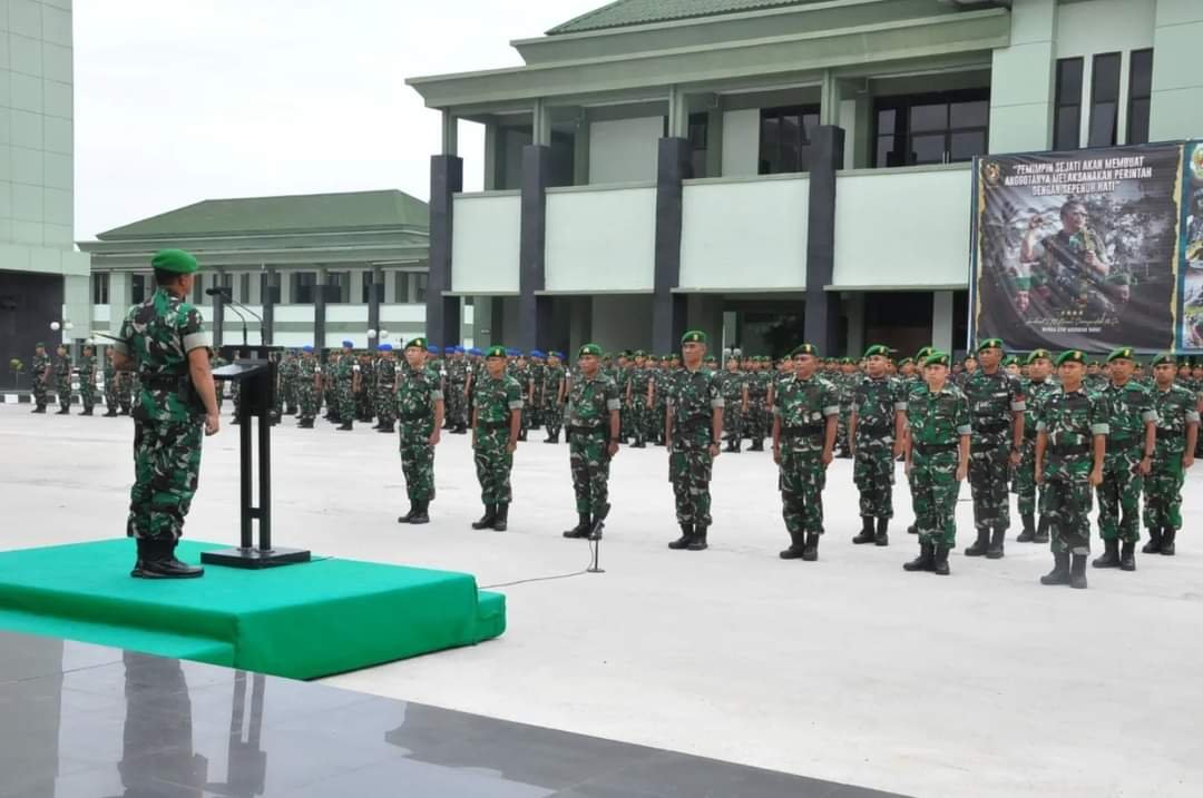 PEKANBARU, hitsnasional.com – Komandan Korem 031/Wira Bima, Brigjen TNI Sugiyono memimpin upacara kenaikan pangkat bagi Perwira, Bintara, dan Tamtama di jajaran Korem 031/Wira Bima. Upacara yang berlangsung khidmat ini dihadiri oleh para prajurit beserta keluarga yang turut merasakan kebanggaan atas pencapaian yang diraih, bertempat di Lapangan Makorem Jl. Mayor Ali Rasyid No.01. Selasa (01/10/24).