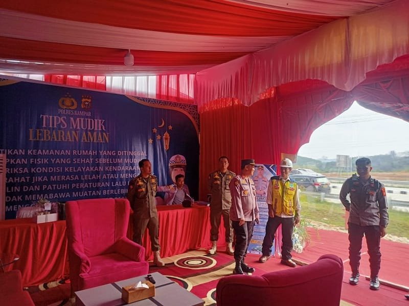 “Pada giat kali ini, kami Polres Kampar melakukan pengecekan terhadap arus lalu lintas di Gerbang Pintu Tol XIII koto Kampar yang berdasarkan pantauan kami berada di dalam keadaan tertib, aman serta kondusif,” ucap Wakapolres Kampar, Kompol Andi Cakra Putra.