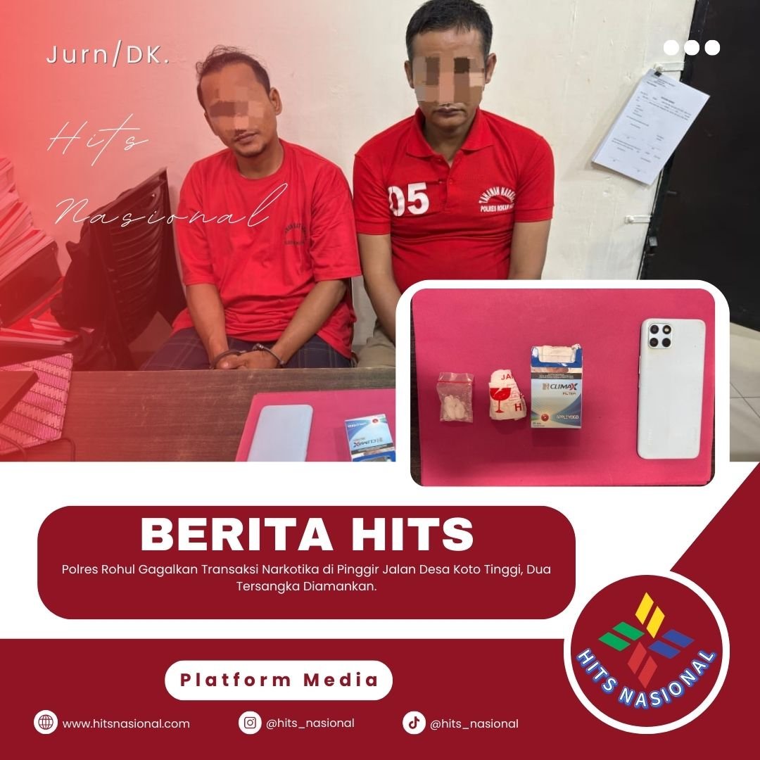 Pada Kamis (18/9/2025) sekira pukul 13.00 WIB, tim Satresnarkoba Polres Rohul yang dipimpin oleh Aipda Ronaldi melakukan penangkapan terhadap kedua tersangka di pinggir jalan Desa Koto Tinggi. Dari hasil penggeledahan, ditemukan 1 paket narkotika jenis sabu yang dibungkus plastik klip warna putih bening, 1 buah lakban warna putih, 1 buah kotak rokok merk Climax warna biru, dan 1 unit handphone merk Infinix warna biru.