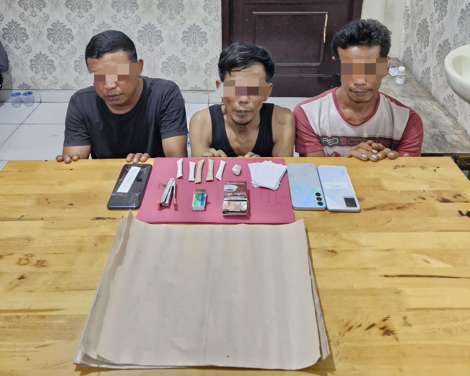“Dari lokasi kejadian, petugas berhasil mengamankan berbagai barang bukti, di antaranya 6 paket narkotika jenis ganja dengan berat kotor 9,88 gram, 4 lembar kertas berwarna cokelat, 9 lembar kertas berwarna merah, 1 bungkus rokok merek Coffe yang berisi paket ganja, 1 kotak anak staples dan 1 unit staples, 3 unit handphone dari berbagai merek (Samsung A05s, Vivo Y21A, Vivo V2026), 1 buku catatan warna cokelat yang berisi catatan transaksi ganja, 2 unit sepeda motor, masing-masing merek Vario dan Supra Fit-X, ” ungkap AKP Tony Armando.