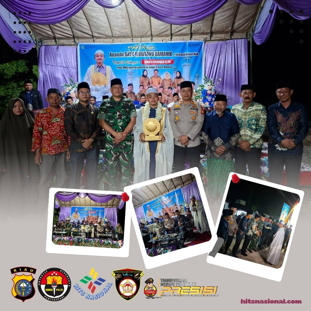 Kunto Darussalam|Rohul, hitsnasional.com – Kebanggaan besar dirasakan masyarakat Desa Sungai Kuti, Kecamatan Kunto Darussalam. Selasa malam (26/8/2025), ratusan warga tumpah ruah memenuhi halaman desa untuk menyambut kepulangan Ananda Bayu Wibisono, qari muda yang berhasil meraih Juara II Golongan 15 Juz pada Musabaqah Hifzhil Qur’an (MHQ) Internasional di Kota Makkah, Arab Saudi.