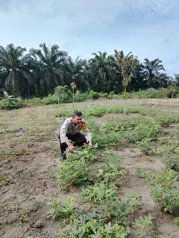 PERAWANG (SIAK), hitsnasional.com – Dalam mendukung Asta Cita Presiden RI Prabowo Subianto terkait ketahanan pangan, Bhabinkamtibmas Kampung Maredan Barat, Aipda Azwan Har, bersama warga melaksanakan panen perdana kacang tanah di Jalan Alamsyah, belakang SMP Negeri 6 Maredan Barat, Rabu (18/3/2025).