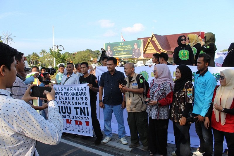 “Kami mendukung penuh terhadap RUU TNI. Aksi ini adalah bentuk nyata dukungan dari masyarakat Riau, khususnya Kota Pekanbaru,” ujarnya.
