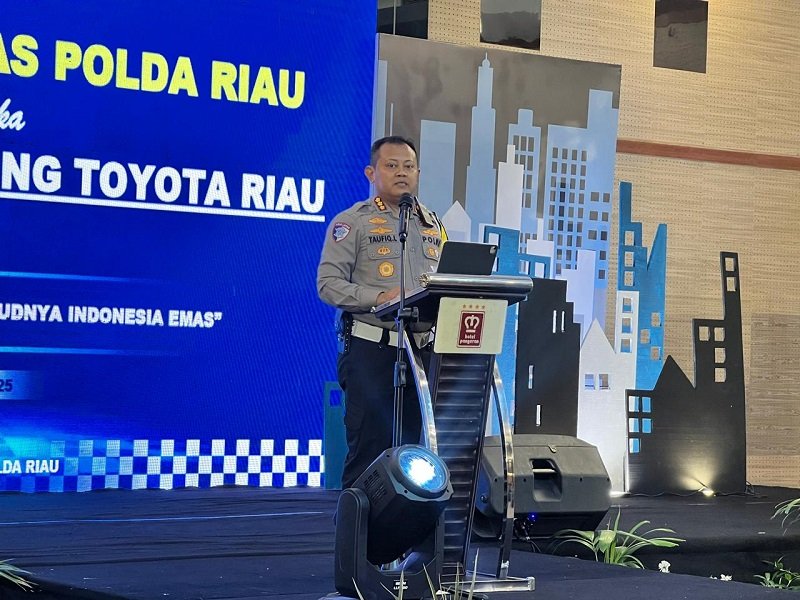 Kegiatan ini dihadiri langsung oleh Direktur Lalu Lintas Polda Riau, Kombes Pol Taufiq Lukman Nurhidayat, S.I.K., M.H., beserta jajaran, termasuk Kasubdit Kamsel AKBP Dasril, S.Pd., M.M., dan Ps. Kasubdit Gakkum Kompol Fauzi, S.H., M.H. Hadir pula jajaran manajemen Agung Toyota, mitra value chain seperti ACC, TAF, Maybank, serta pelaku usaha transportasi di Provinsi Riau.