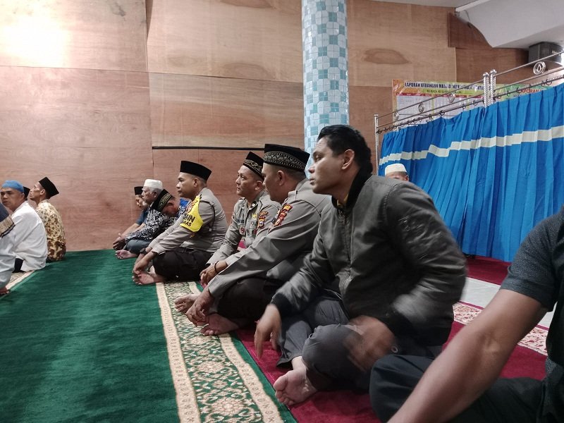Personel Polsek Perhentian Raja yang terdiri atas KASPK Aiptu Suwarno, Ps. Kanit Binmas Bripka Seprizoni Marta, Bhabinkamtibmas Aipda Ismail Marzuki, Aipda Dodi Arianto, S.E., dan Bripka Sri Haryanto, turut serta menjalankan ibadah salat tarawih berjemaah di Masjid Nurul Iman. Mereka berbaur dengan jemaah masjid lainnya dan bersama-sama melaksanakan ibadah dengan khusyuk dan tenang.