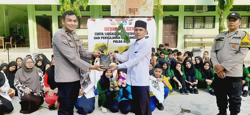 Dalam kegiatan simbolis tersebut, Ditbinmas Polda Riau menyerahkan bibit pohon kepada pihak sekolah dan mengajak siswa langsung menanamnya di lingkungan sekolah. Tak hanya itu, boneka edukatif Domang dan Tari, kaus, serta bola basket juga diberikan kepada siswa-siswi yang berhasil menjawab kuis interaktif seputar pelestarian lingkungan.