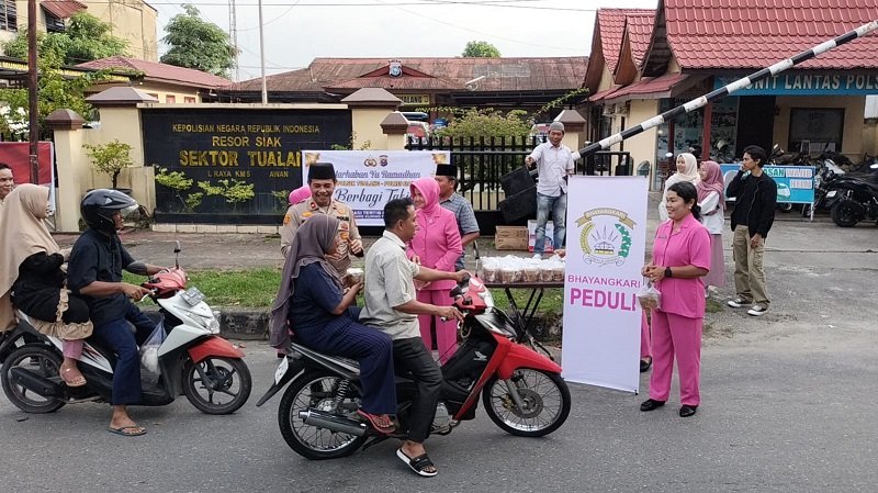 Kegiatan berlangsung sejak pukul 17.00 WIB di jalan poros depan Mapolsek Tualang. Dipimpin langsung oleh Kapolsek dan Ketua Bhayangkari, sebanyak 200 paket takjil dibagikan kepada pengguna jalan yang melintas, baik pengemudi kendaraan roda empat, pengendara roda dua, maupun pejalan kaki.