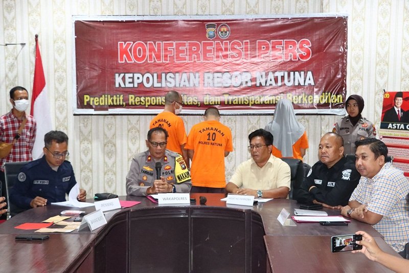 Wakapolres Natuna, Kompol Paten Tarigan, S.H., didampingi Kasat Narkoba, Iptu Walter P. Nainggolan, S.H., serta Kasi Humas, Iptu Sukamto Manulang, mengungkapkan bahwa penangkapan bermula dari operasi di Gang Karpet Biru, Kelurahan Ranai. Polisi lebih dulu menciduk IB, yang setelah diperiksa mengaku mendapatkan sabu dari seorang perempuan berinisial SJ.