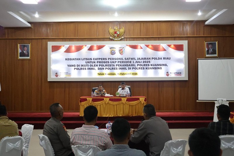 KUANTAN SINGINGI, hitsnasional.com – Polres Kuantan Singingi (Kuansing) menggelar kegiatan Penelitian Khusus Catatan Pribadi (Litsus Catpers) bagi personel Satuan Wilayah (Satwil) jajaran Polda Riau dalam rangka proses Usulan Kenaikan Pangkat (UKP) periode 1 Juli 2025. Kegiatan ini berlangsung pada Selasa, (25/2/2025), mulai pukul 09.30 WIB di Aula Sanika Satyawada Polres Kuansing.