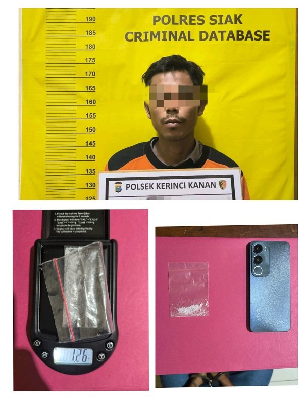 KERINCI KANAN (SIAK), hitsnasional.com – Satuan Reserse Kriminal (Reskrim) Polsek Kerinci Kanan berhasil mengungkap kasus narkotika jenis shabu dengan berat kotor 1,26 gram pada Senin malam, 17 Maret 2025, di sekitar Kantor Camat Kerinci Kanan, Kecamatan Kerinci Kanan, Kabupaten Siak. Pengungkapan ini berawal dari informasi masyarakat mengenai adanya transaksi narkotika di lokasi tersebut.