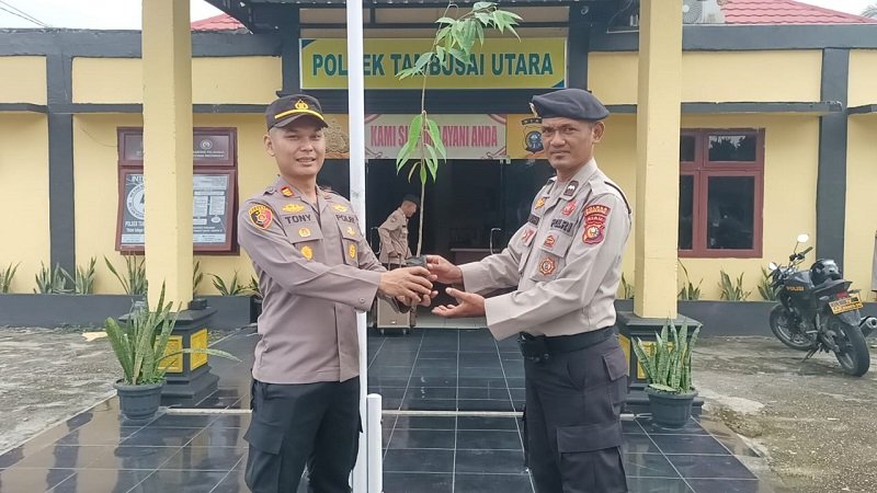 TAMBUSAI UTARA (ROKAN HULU), hitsnasional.com – Dalam semangat menjaga kelestarian lingkungan dan mempererat tali silaturahmi antar personel, Polsek Tambusai Utara menggelar kegiatan penanaman bibit pohon sekaligus pemberian bibit kepada personel yang berulang tahun. Kegiatan yang dilaksanakan di halaman Mako Polsek Tambusai Utara ini, pada Senin, (07/03/2025), dimulai pada pukul 08.40 WIB dan dipimpin langsung oleh Kapolsek Tambusai Utara, AKP Tony Prawira, STrK.,SIK.,MH.