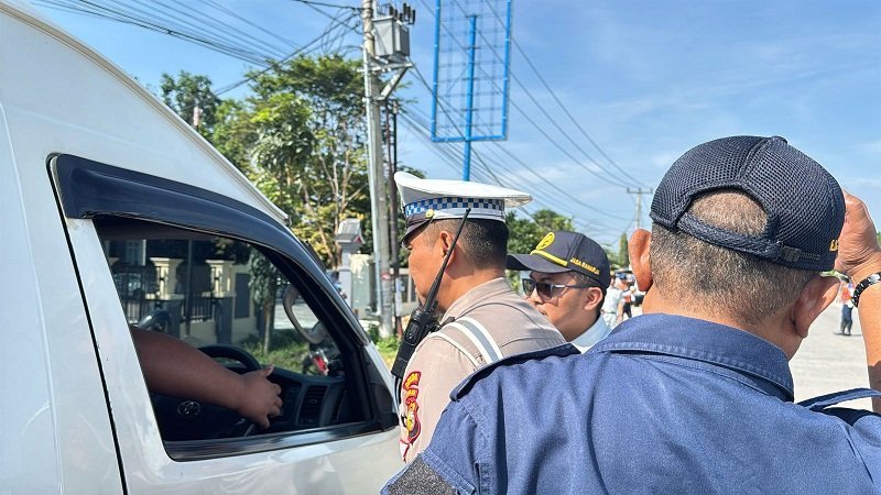 Dari pantauan awak media dilokasi kegiatan, baik personel Ditlantas, Dishub, BPTD dan Jasa Raharja yang ikut terjun langsung melakukan pemeriksaan surat kelengkapan kendaraan yang diberhentikan seperti, SIM, STNK, KIR dan surat – surat lainnya berlangsung kondusif.