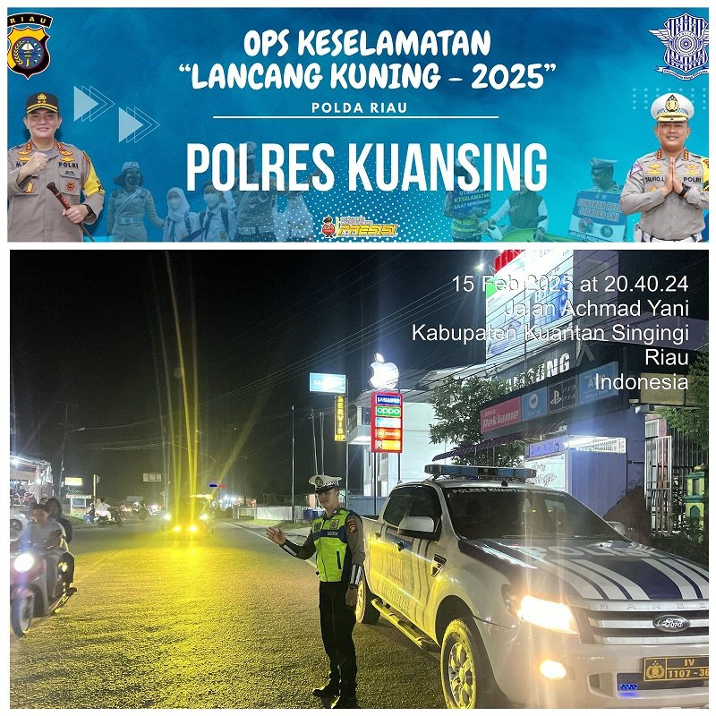 Kapolres Kuantan Singingi AKBP Angga F. Herlambang, S.I.K., S.H., melalui Kasat Lantas Polres Kuansing, AKP A. Ramadhan, S.H., M.Si., menyampaikan “Patroli dimulai pukul 20.00 WIB hingga selesai, dengan menyasar sejumlah ruas jalan utama di Kota Teluk Kuantan dan sekitarnya, termasuk Jalan Ahmad Yani, Jalan Proklamasi, Jalan Jenderal Sudirman, dan Jalan Diponegoro di Kecamatan Kuantan Tengah. Selain itu, patroli juga diperluas ke jalan lintas Teluk Kuantan-Pekanbaru yang sering menjadi jalur lalu lintas utama masyarakat,” ujar Kasat.