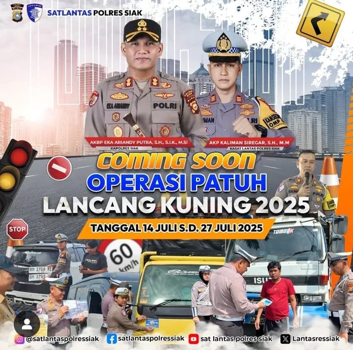 Operasi ini akan melibatkan personel gabungan dari Satlantas Polres Siak dan instansi terkait, dengan titik pemeriksaan yang tersebar di sejumlah ruas jalan utama di Kabupaten Siak.