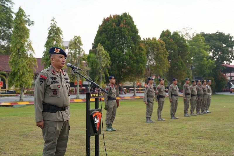 Sejumlah pejabat utama turut hadir, di antaranya Danyon A Pelopor AKBP Jhon Firdaus, Danden Gegana AKBP Franky Tambunan, serta para kepala seksi dan perwira jajaran Satuan Brimob Polda Riau.