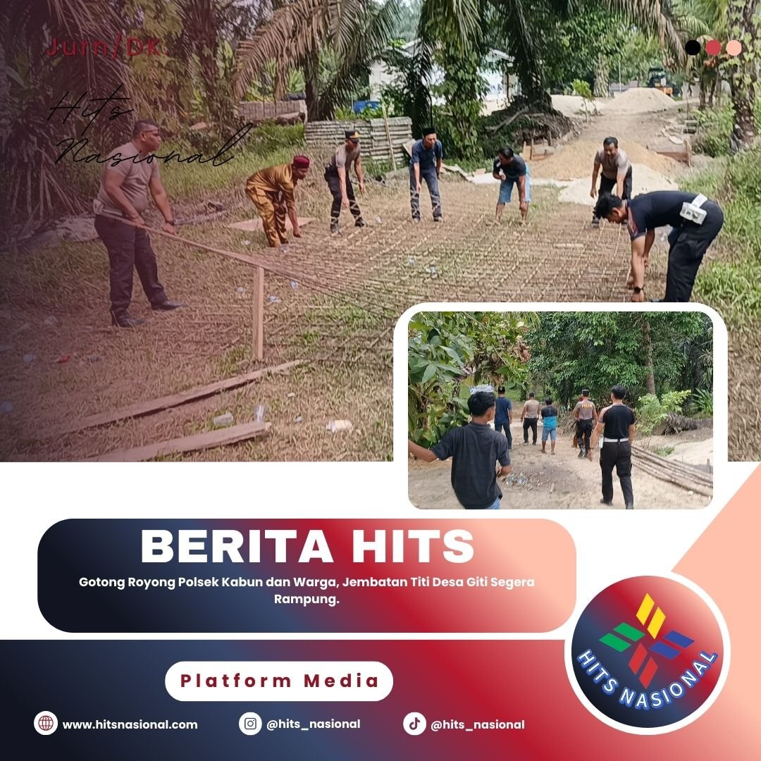 Rokan Hulu, hitsnasional.com — Polsek Kabun terus mendukung pembangunan infrastruktur desa melalui kegiatan pengerjaan Jembatan Titi yang berlokasi di RT 07 RW 04 Dusun I, Desa Giti, Kecamatan Kabun, Kabupaten Rokan Hulu.